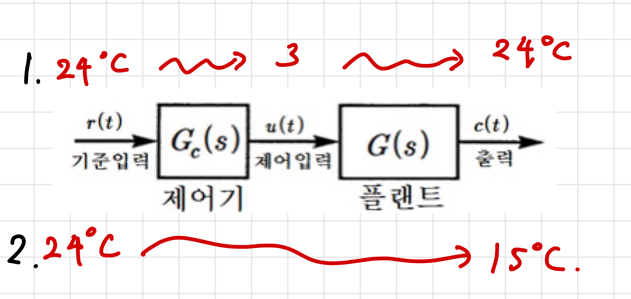 1번상황처럼 24도입력이 잘 설계된 제어기를 통해 플랜트에 필요한 입력값 3으로 바뀌고 이 값이 플랜트를 통과했을때 24도를 만들어주는 시스템으로 바꿔주는거죠.