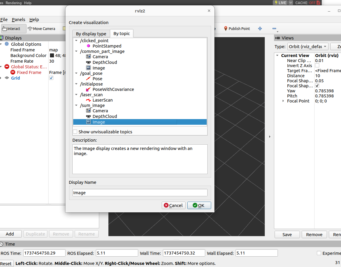 맵은 충돌 시마다 초기화가 되어서 과적합을 방지하는 것 같고, rviz2로 sun_image 토픽을 Image로 보면
