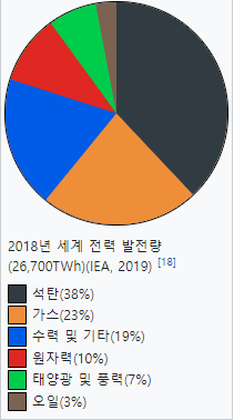 세번째 그래프는 세계 전력 발전량이다. 전력은 환경적인 측면에서 좋다고 생각하기 쉽지만 실상은 전력을 만드는 과정에서 발생하는 탄소가 문제인데, 석탄과 가스의 발전량 의존성이 높은 수치를 나타냈다.